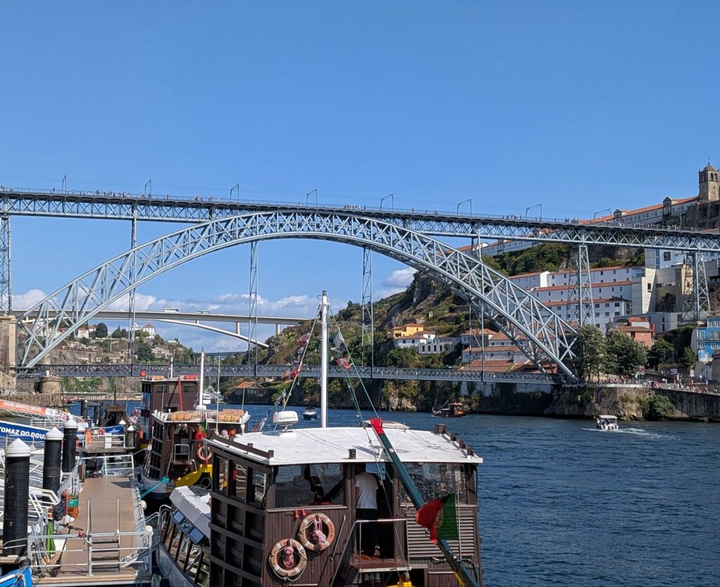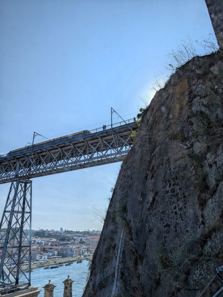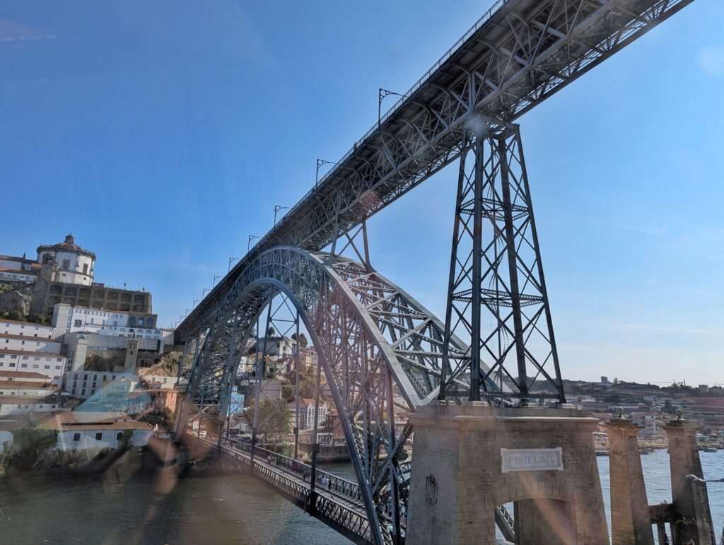 Die Brücke, die ihr auf den Fotos seht, ist die Ponte Dom Luís. Sie wurde entworfen vom belgischen Ingenieur Théophile Seyrig, einem Schüler von Gustave Eiffel, und 1886 eröffnet. Die Brücke ist circa. 385 m lang; der Bogen hat eine Spannweite von 172 m.