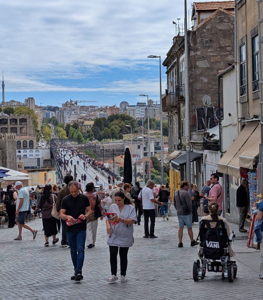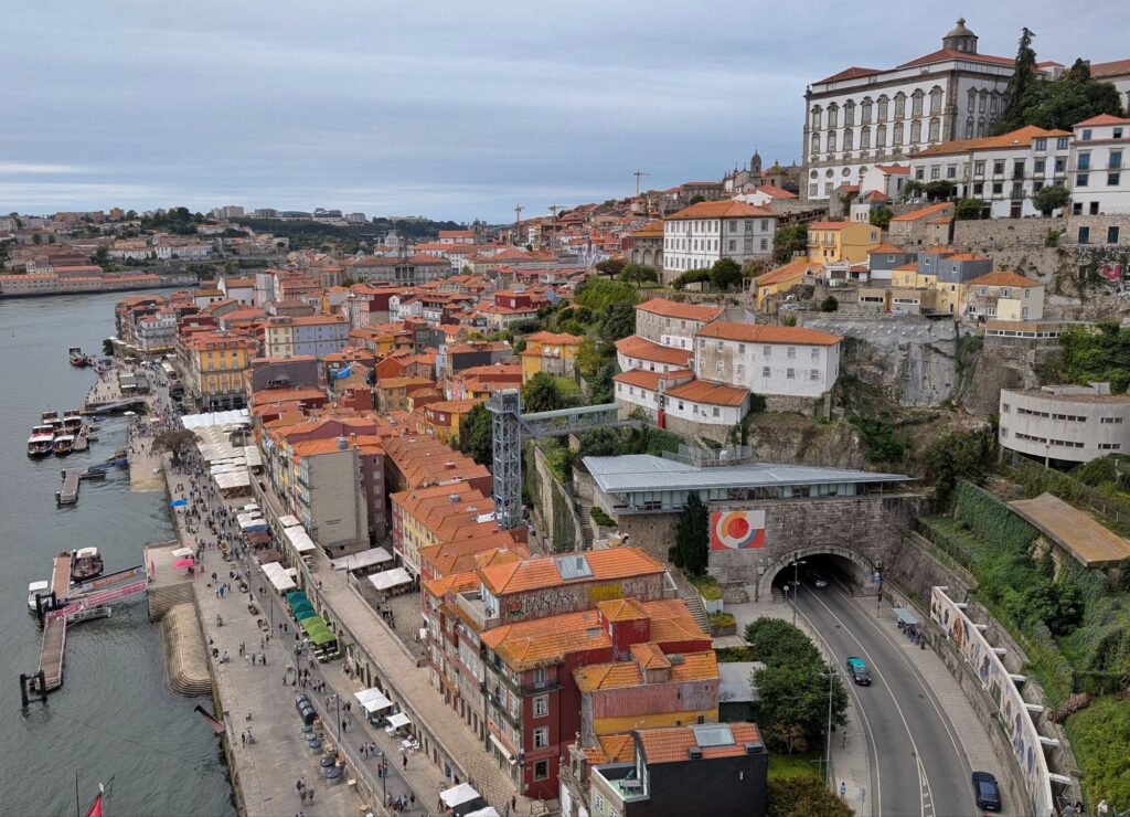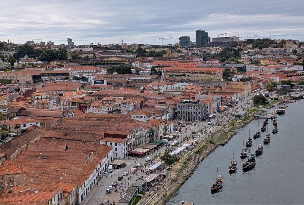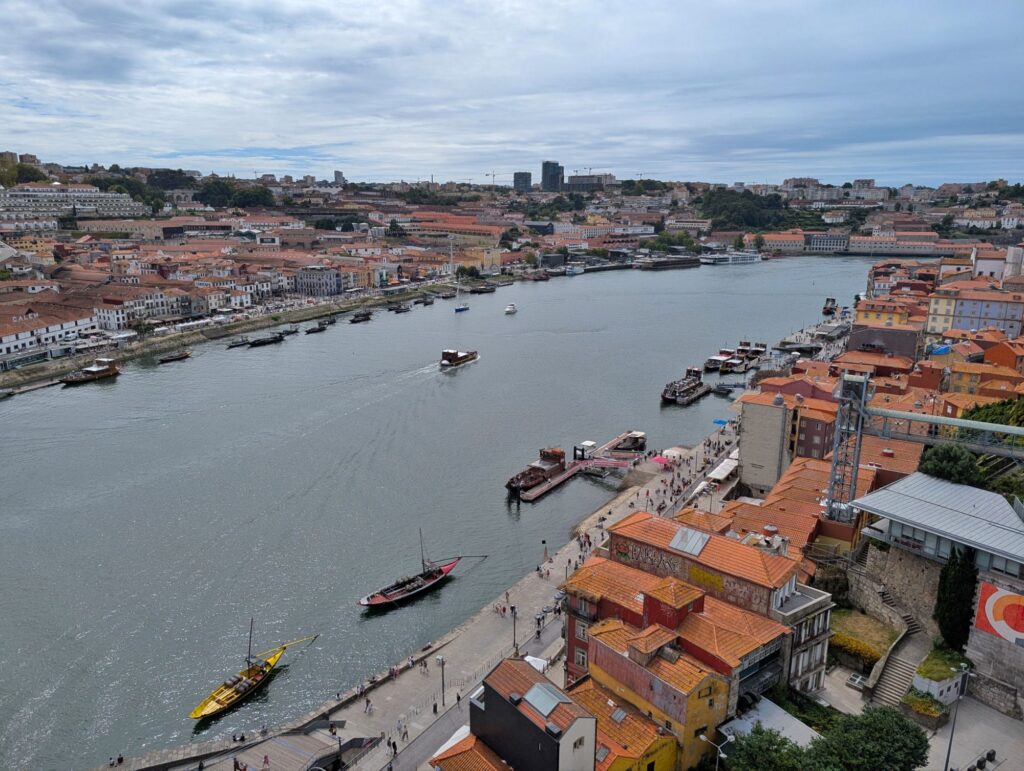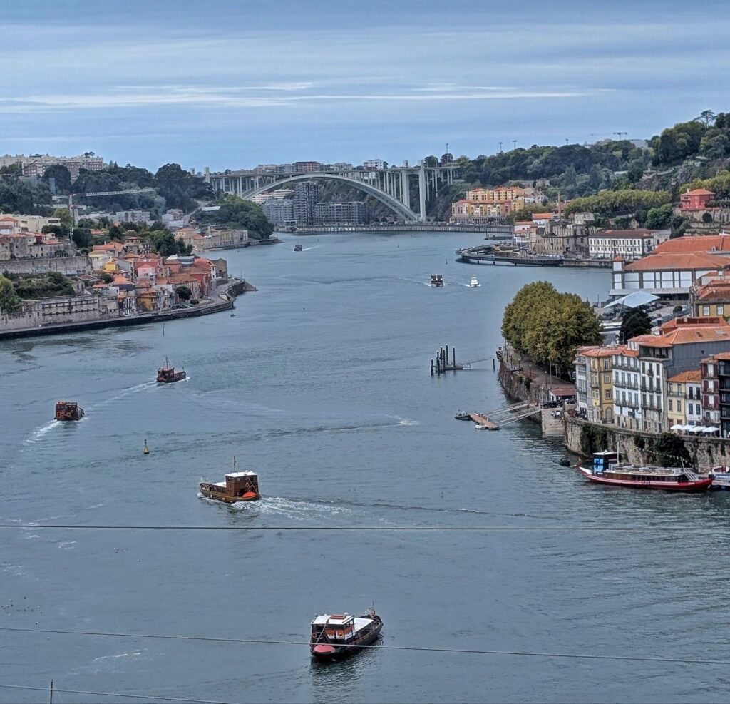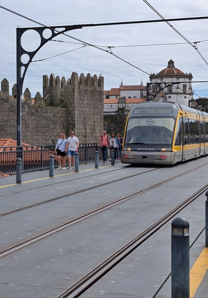 Interessant ist, dass sie zwei Ebenen hat. Auf der unteren fahren Autos, auf der oberen die Metro. Fußgänger*innen können beide Ebenen benutzen. Wir werden uns das noch genauer anschauen. Zunächst aber erkunden wir die Altstadt von Porto, die Ribera.