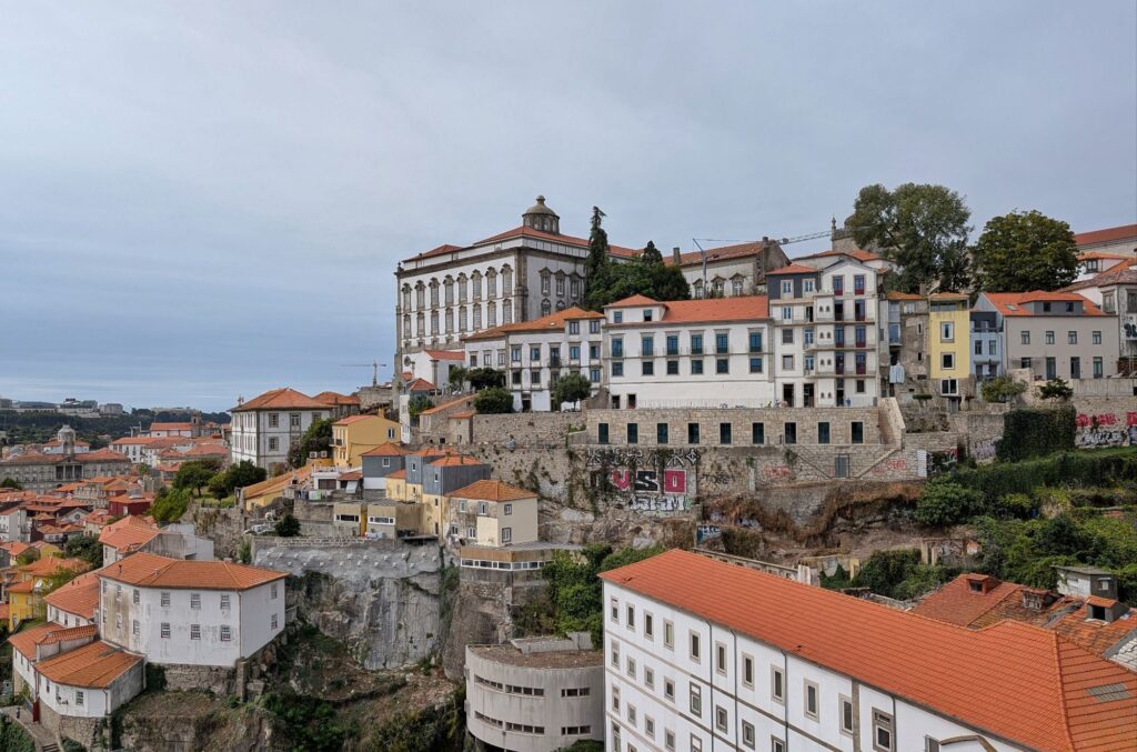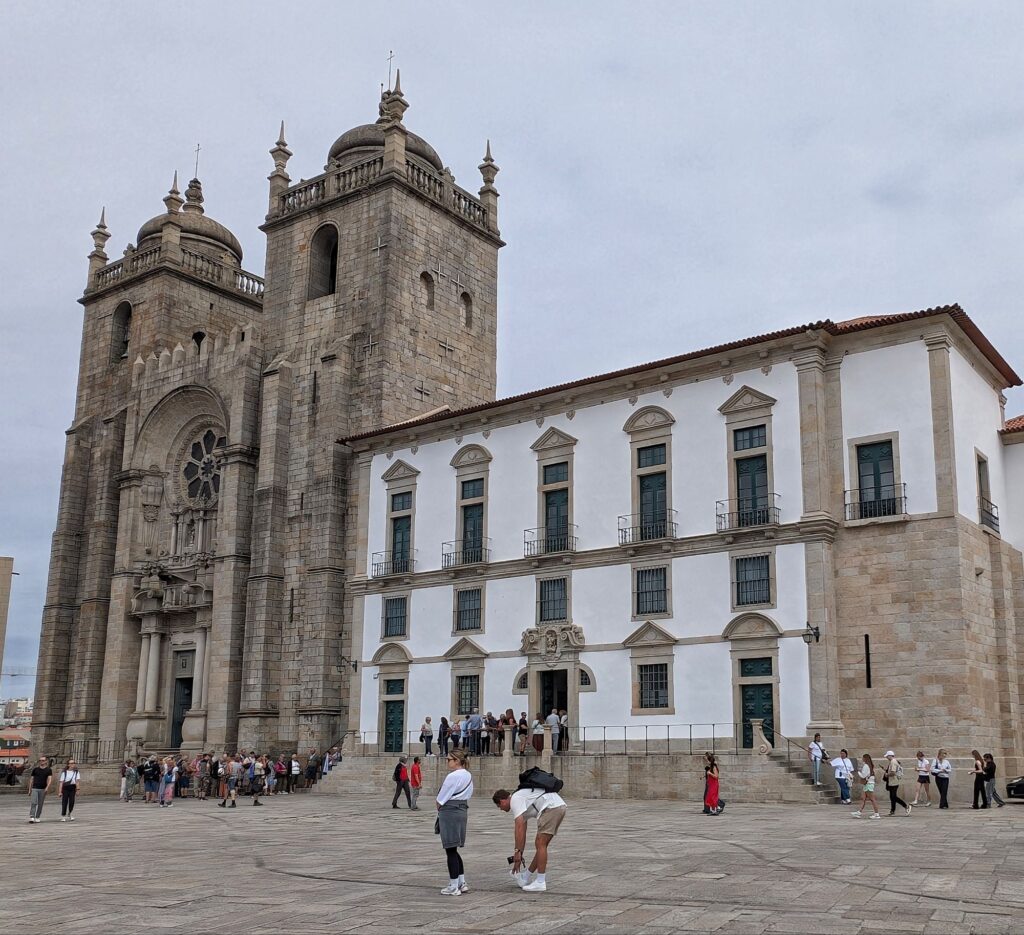 Oben angekommen kann man sich den Bischofpalast anschauen (den ihr erst auf späteren Fotos von der Brücke aus sehen könnt) oder die Kathedrale von Porto (Sé do Porto). Vom Platz davor hat man einen schönen Ausblick auf Porto.